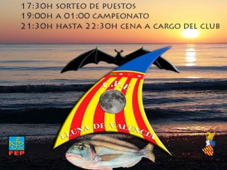 V Open de pesca mar costa Lluna de Valencia Sábado Día 2 de Julio en la playa de la Patacona Premios en función de la participación 1er Clasificado: 400€ + trofeo 2º Clasificado: 250€ + trofeo 3º Clasificado: 150€ + trofeo