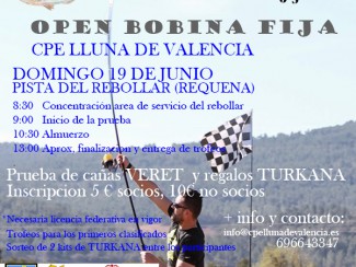 Próximo domingo 19 de junio Open de bobina fija en el Rebollar (Requena) Como siempre con almuerzo incluido y bebida durante la jornada. Además podremos probar las cañas de pesca y pista de la prestigiosa firma VERET!! Trofeos y premios para los primer