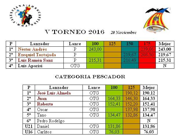 in LANCE PESADO Os dejamos la clasificación final del V Torneo de longcasting Lluna de Valencia. Ha habido movimientos en la clasificación y a falta de solo 1 prueba la cosa se pone interesante. Próxima Fecha 4 de diciembre 😉 Os esperamos en la pista. Articulo anterior Campeonato del Mundo de lance pesado Almeirim 2016 – Video LANCE PESADO 13/12/2025 a las 9:39 Next Post VI TORNEO LIGA LONGCASTING 2016 – CPE LLUNA DE VALENCIA LANCE PESADO 13/12/2025 a las 9:39 Attachment