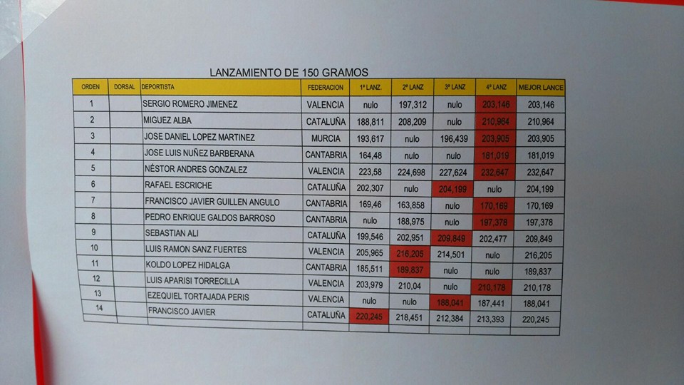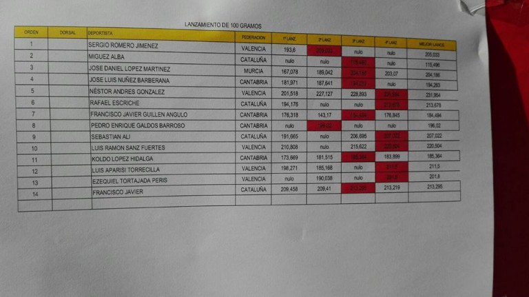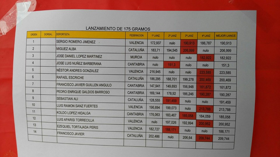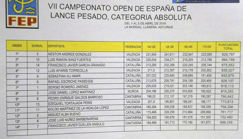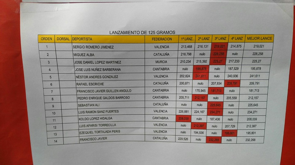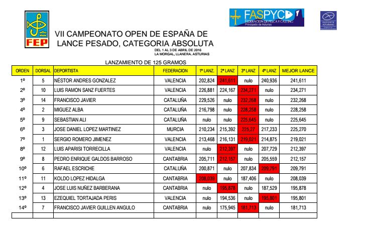 125gr: Como sucedió en los dos primeros plomos Néstor se destacaba del resto de sus competidores, no dando opción a arrebatarle el primer puesto, La lucha por el 2º y 3º puesto fue realmente apasionante entre Luisra y Siscu. Al igual que el 4º y 5º puesto que pretendían varios de los competidores.